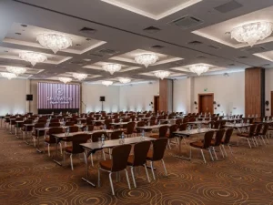 Просторный зал для масштабных мероприятий с различными вариантами рассадки.